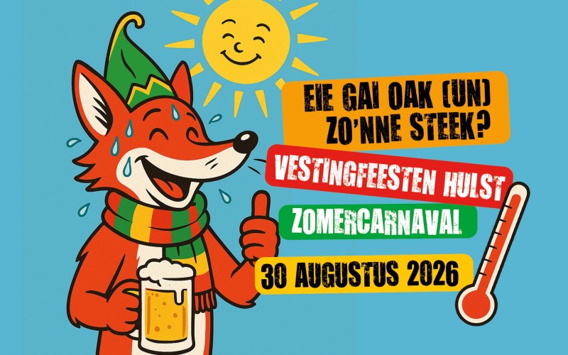 Zet zondag 30 augustus 2026 in je agenda en kom carnavalesk verkleed naar Hulst en hang de Vossenvlag uit!